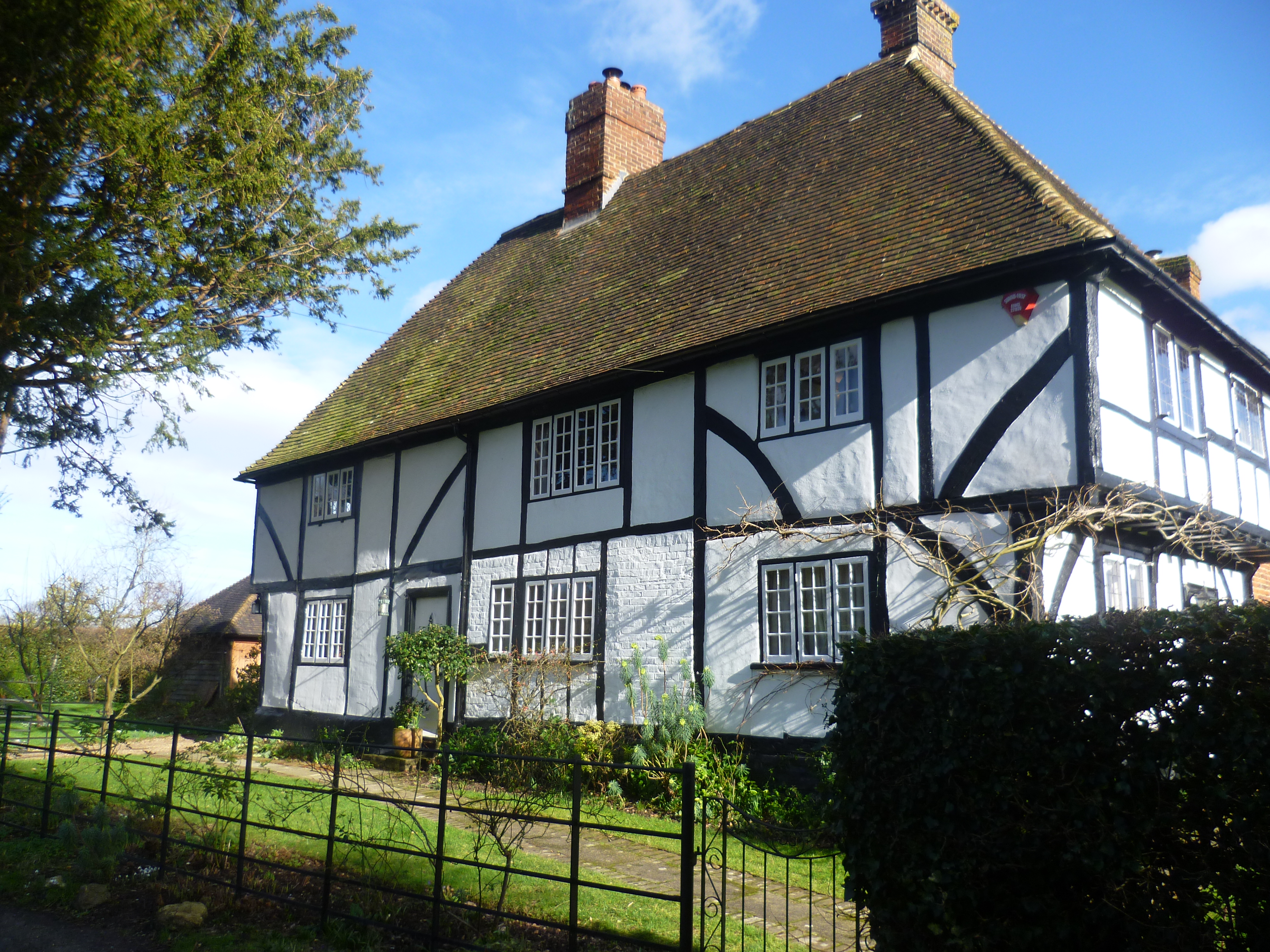 Half-timbered houses like these were often filled between the timbers with mixtures of clay and straw. Half-timbered house on Mountain Street by Marathon, CC BY-SA 2.0 https://creativecommons.org/licenses/by-sa/2.0, via Wikimedia Commons