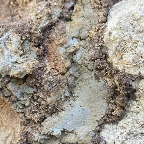 Left: pure, unprocessed Boston Blue Clay. Right: Clay painting made with it