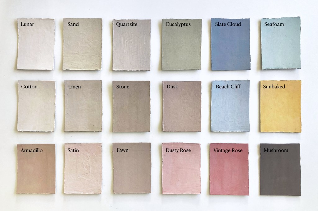 - Unique mineral sheen: Clay paints uniquely reflect light despite being mostly matte. Look closely and you’ll see tiny mineral particles: as in nature, you’ll never find utter uniformity in a clay paint.