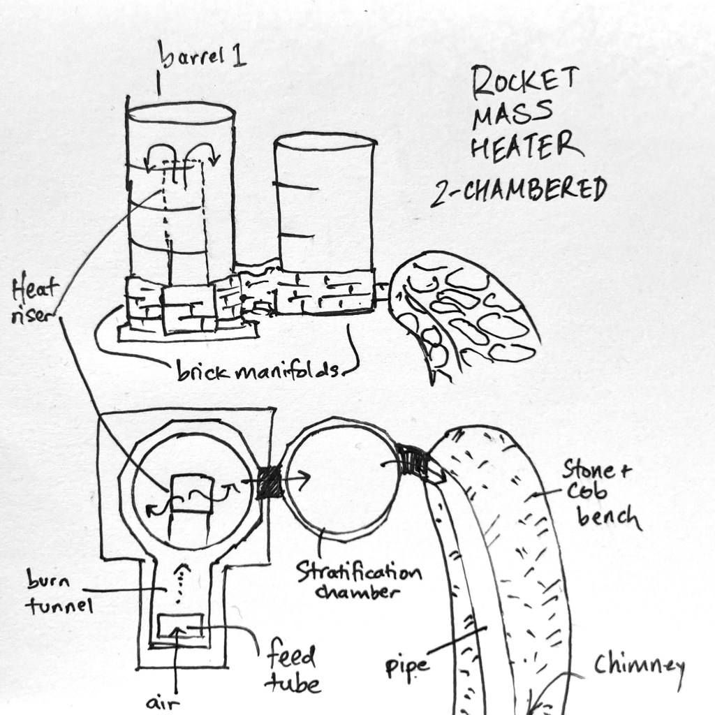 A rocket mass heater is a low-cost type of masonry heater. Rocket mass heaters use a mere fraction of the fuel of typical wood stoves, with short, hot burns that both release heat immediately through metal surfaces and “charge up” a large mass with heat that radiates for hours.