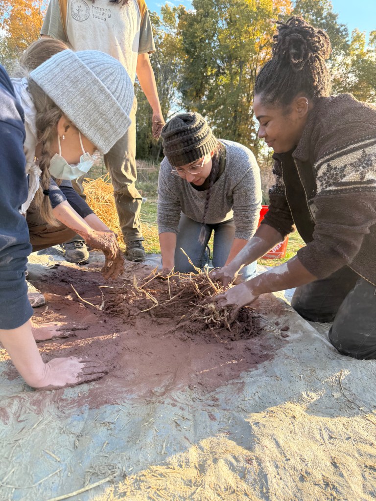 Cob pizza oven built with workshop participants and Embodied Build.Earthen floor, Michigan.Cob house, TN