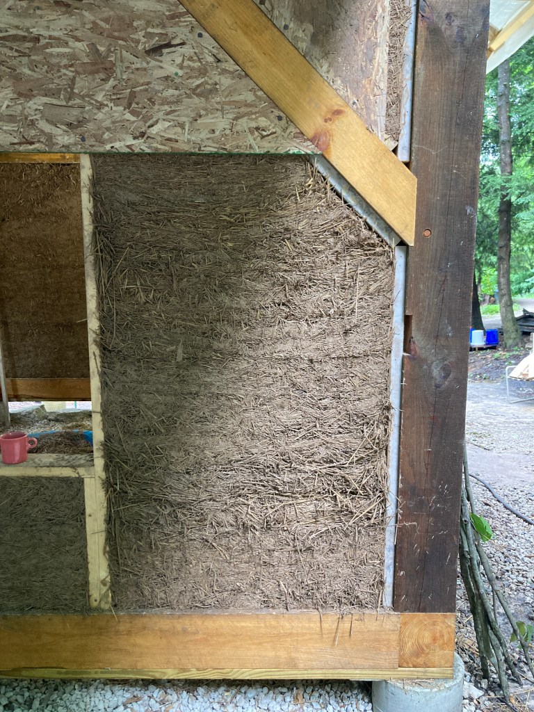 Light straw-clay insulation on timber frame house in MichiganFinish clay plaster on a straw bale house. Done in Tennessee along with workshop participants.Cob chicken coop, NY